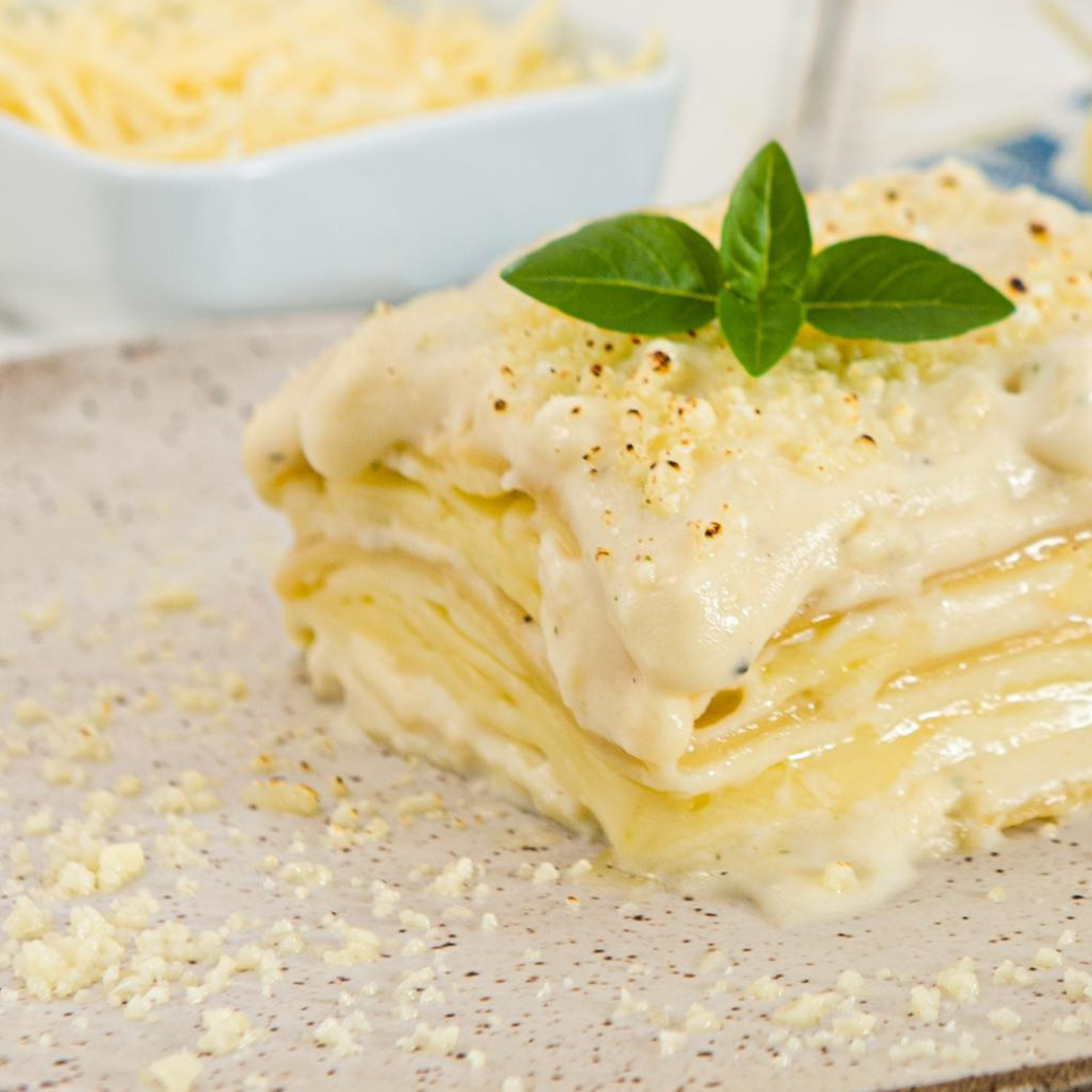 Lasanha 4 Queijos Premium, feita com queijos selecionados e camadas de massa no padrão italiano. Ideal para forno ou airfryer, garantindo textura uniforme e sabor equilibrado no dia a dia.